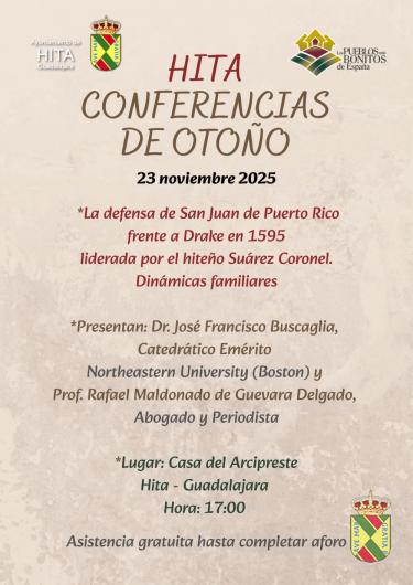 La conferencia, incluida en las Jornadas Culturales de Otoño, lleva por título: La defensa de San Juan de Puerto Rico frente a Drake en 1595 liderada por el hiteño Suárez Coronel. Dinámicas familiares.
