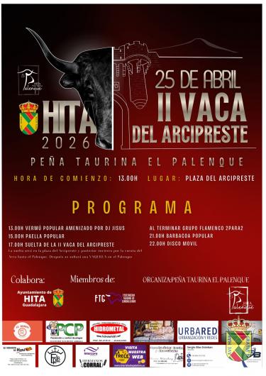 El programa de actos, organizado por la Peña Taurina el Palenque, incluye un vermú y una paella popular entre las 13:00 y las 15:00 horas. Por la tarde, a partir de las 17:00 horas, se soltará una vaca en la plaza del Arcipreste. Después, tendrá lugar un encierro por la calle Puerta de Caballos hasta el Palenque. Para finalizar la jornada, los asistentes podrán disfrutar de una actuación de flamenco, una barbacoa y una disco móvil.