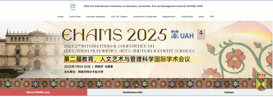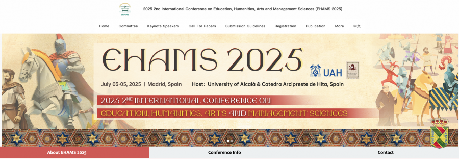 La II Conferencia Internacional sobre Educación, Humanidades, Artes y la Gestión de las Ciencias -EHAMS 2025 en inglés- se celebrará en la Facultad de Educación de la Universidad de Alcalá y en Hita (Programa Social) del 3 al 5 de julio de 2025.